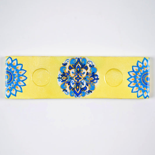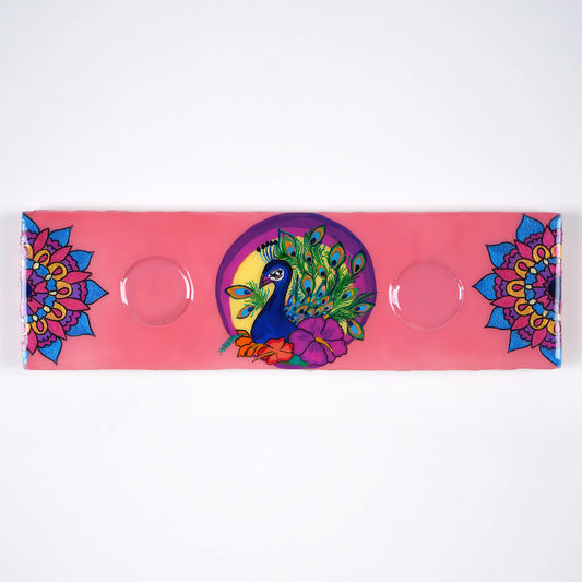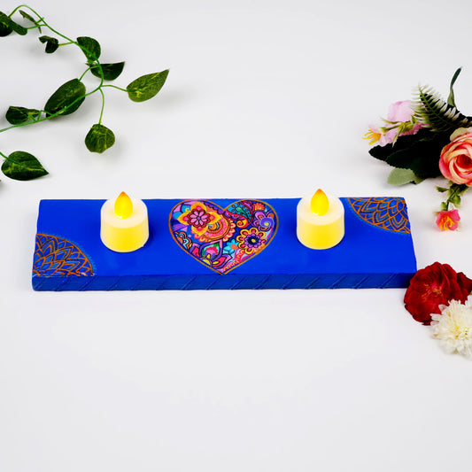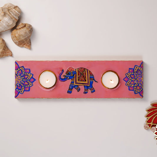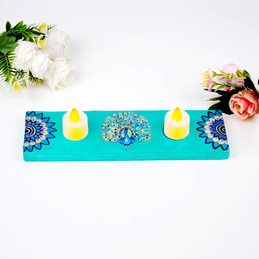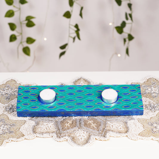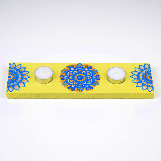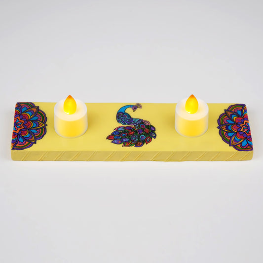 Tealight holder carved through wood and hand-crafted with designs inspired by murals adorning the walls of City Palaces of Rajasthan. These tea-light holders, by themselves are pieces of art and are magical, while holding tea light candles.